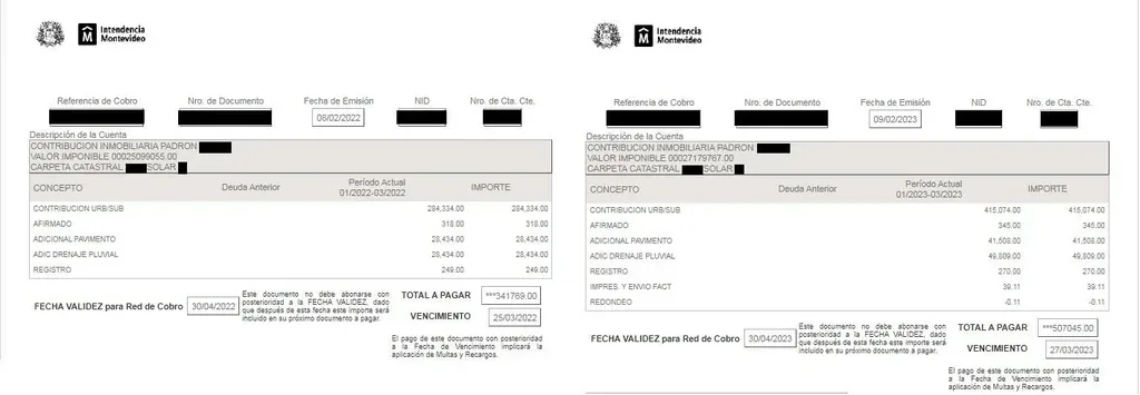 Un vecino dueño de una casa ubicada en Carrasco pagó $ 281.334 por la contribución inmobiliaria en 2022. En 2023 el costo pasó a $ 415.074, es decir, la suba fue del 46%. El aumento determinado por la Intendencia de Montevideo (IM) generó el reclamo de los vecinos y del edil nacionalista Javier Barrios Bove.