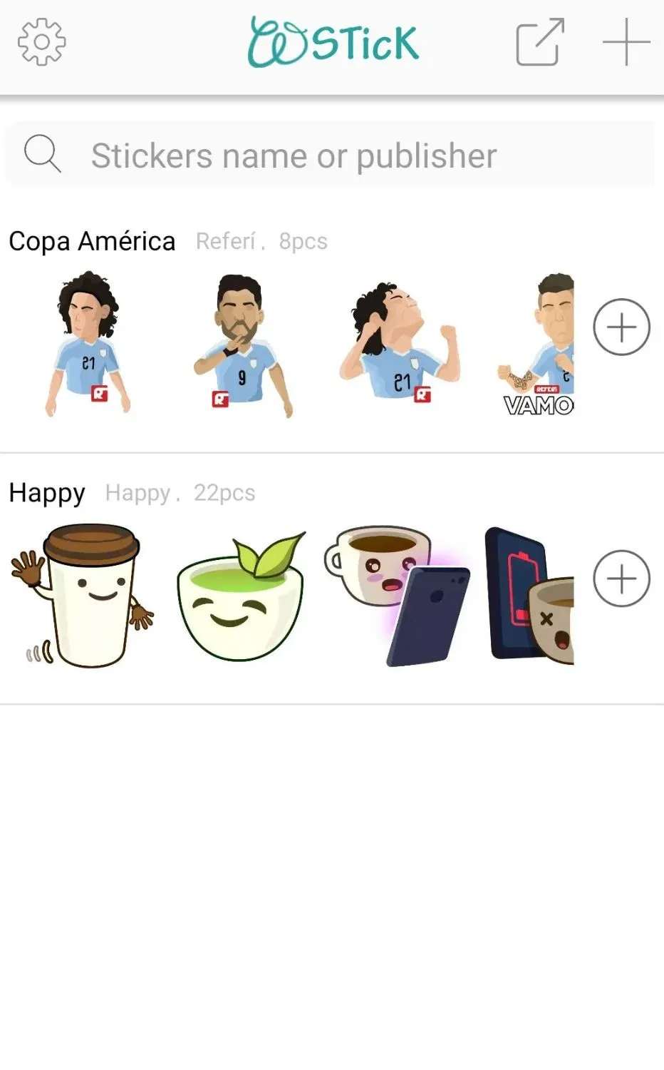 3) Presioná sobre el signo de + y quedarán incluidas en tu teclado de sticlers para compartirlas vía Whatsapp.