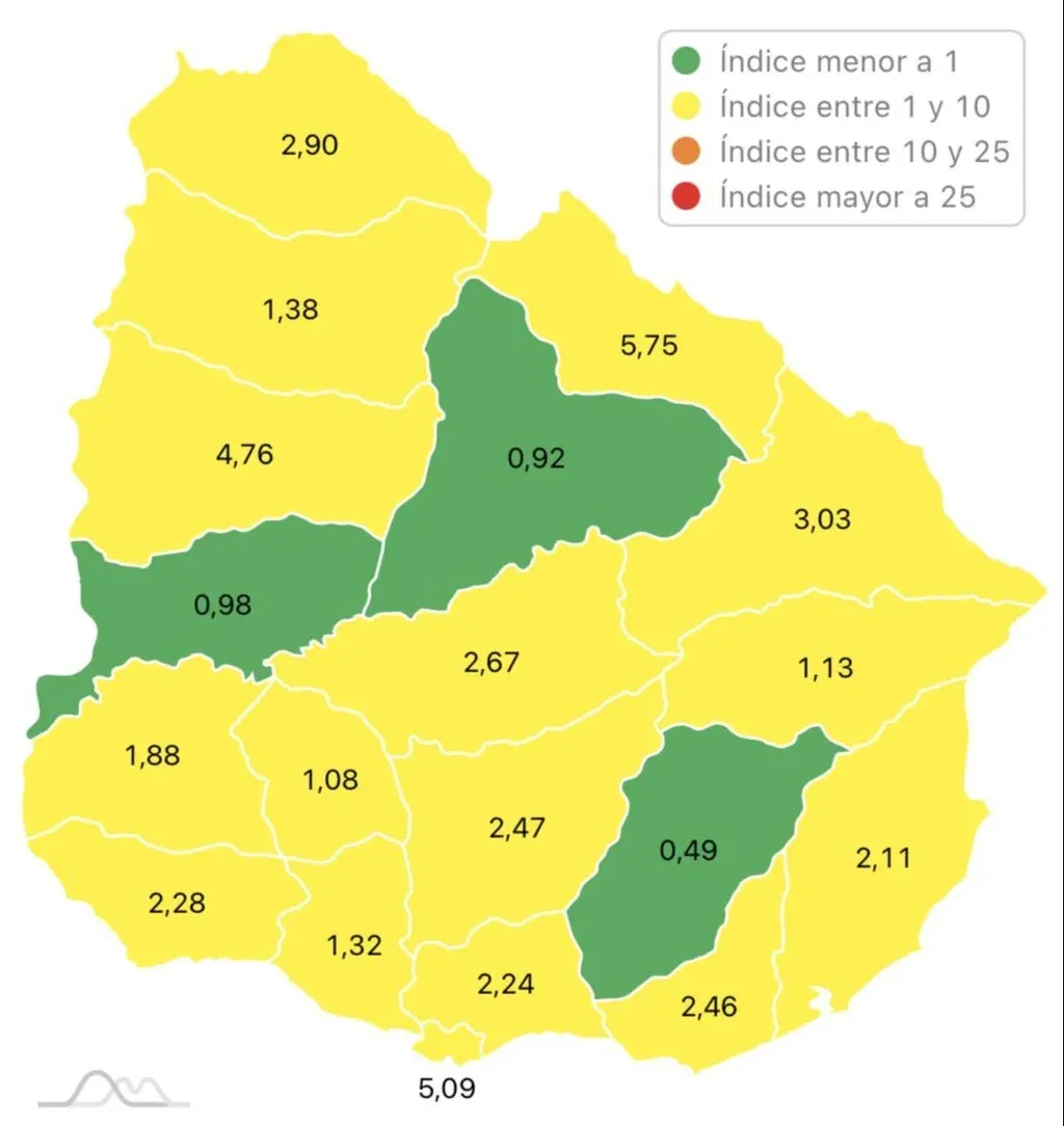 En el índice de Harvard Flores subió a riesgo amarillo y ahora se ubica en ese nivel junto a otros 15 departamentos. En tanto, Tacuarembó, Río Negro y Lavalleja está en verde.