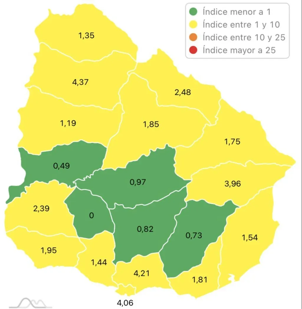 De acuerdo al índice de Harvard, Florida bajó a verde este miércoles y ahora comparte ese nivel junto a Durazno, Río Negro, Lavalleja y Flores. Los otros 14 departamentos están en riesgo amarillo.