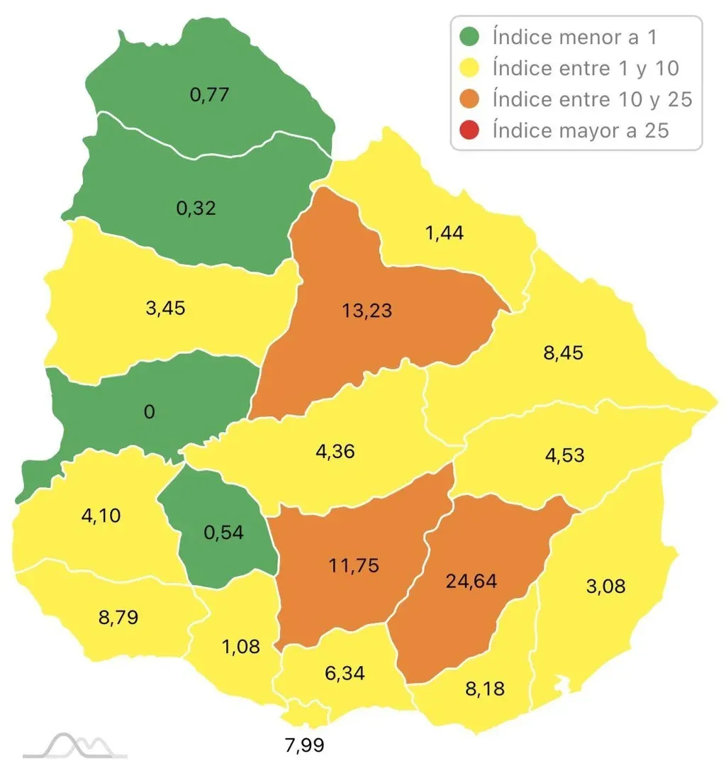 Con 142 casos activos, Lavalleja salió este martes del riesgo rojo en el Índice de Harvard, que calcula los contagios cada 100 mil habitantes. El departamento está en naranja, ahora en el mismo nivel que Tacuarembó y Florida.