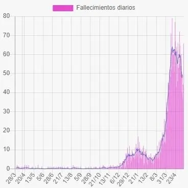 Fallecimientos diarios de pacientes con el virus