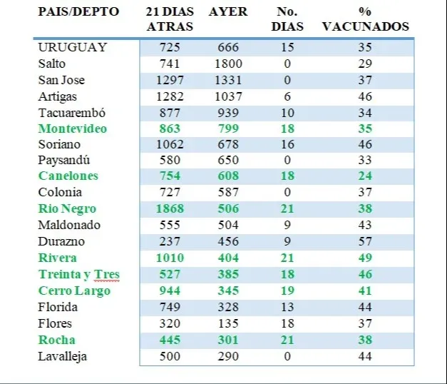 covid19uy.com Casos entre trabajadores de la salud 3) Vacunación y el ejemplo de Rivera