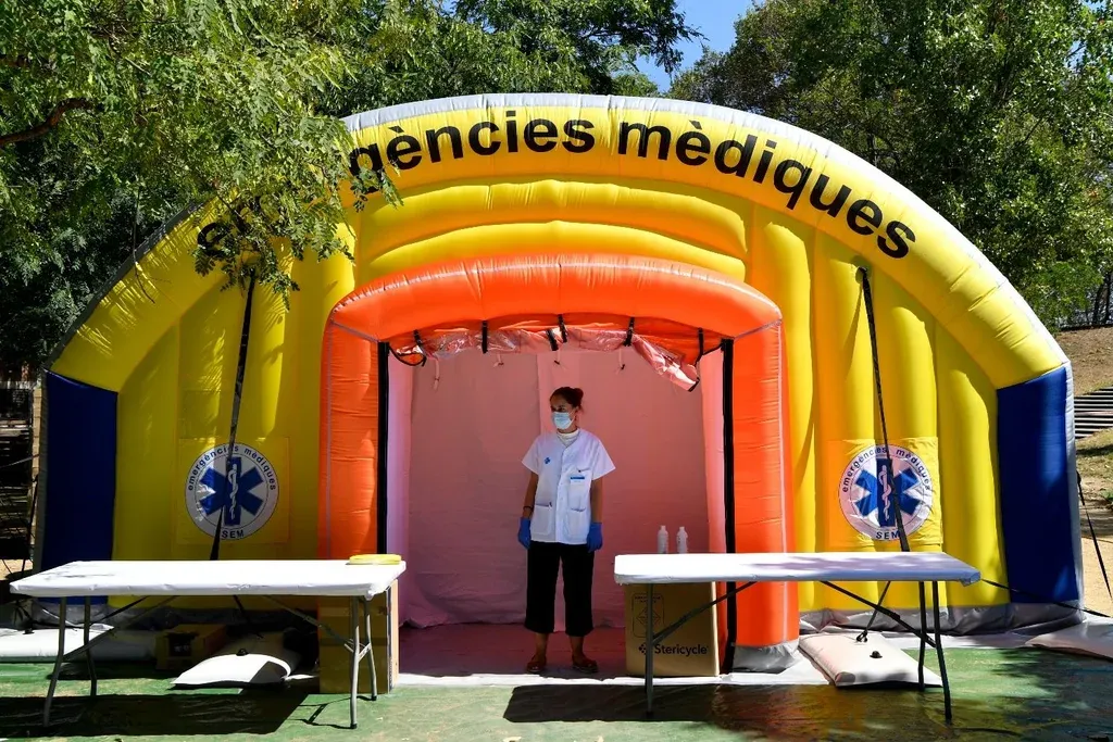 Un centro temporal de testos de coronavirus en Ripollet, España