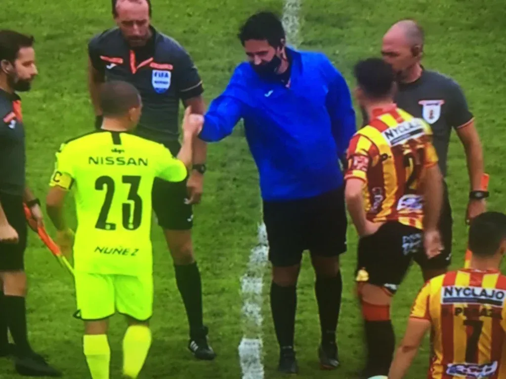 Gargano saluda a Jonathan Fuentes, atrás la línea torcida
