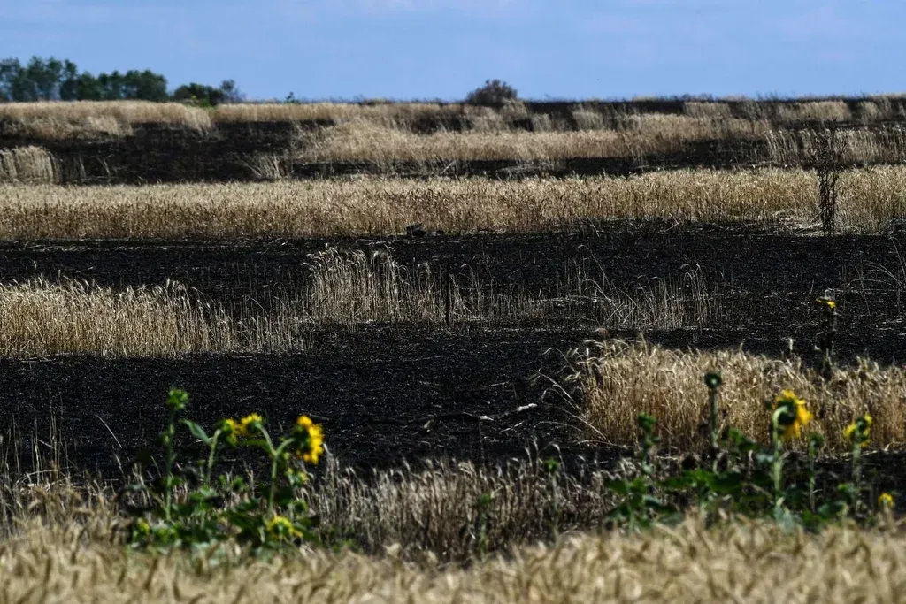 Campos incendiados en Ucrania.