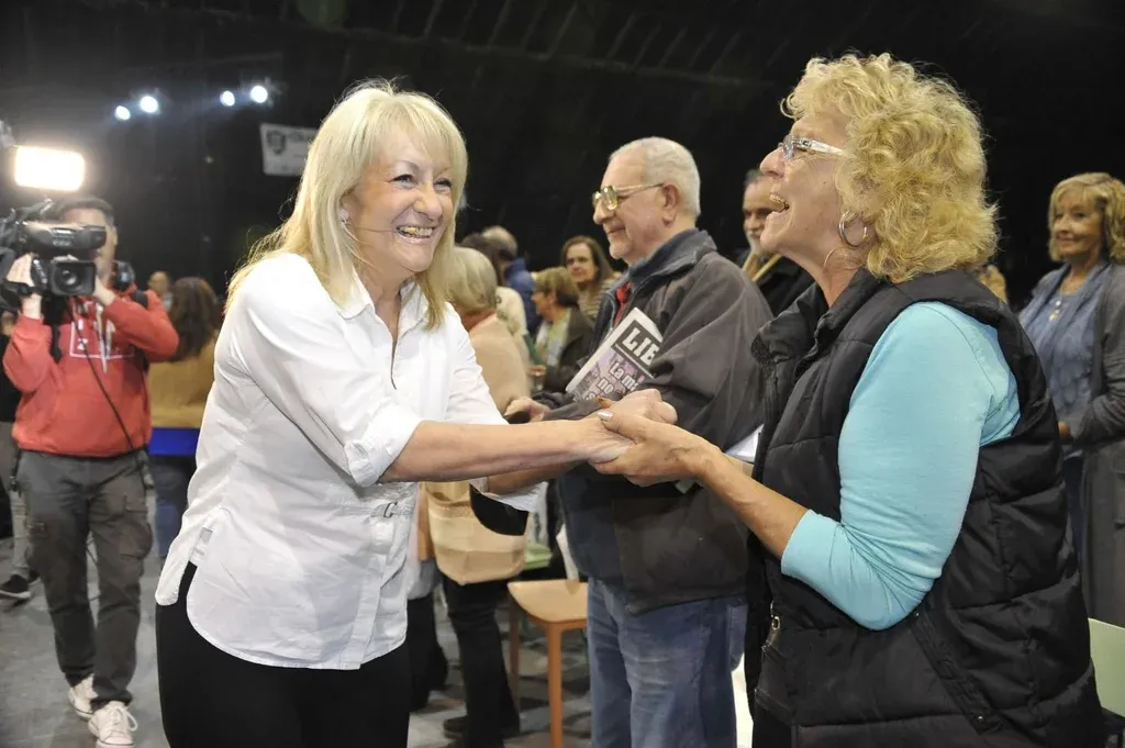 Ingresó ovacionada y cruzó el polideportivo hacia el estrado al frente, donde estaba congregada la primera plana de la coalición de izquierda –con la presencia del canario Yamandú Orsi y el presidente del FA, Fernando Pereira– y el gabinete de la intendencia.