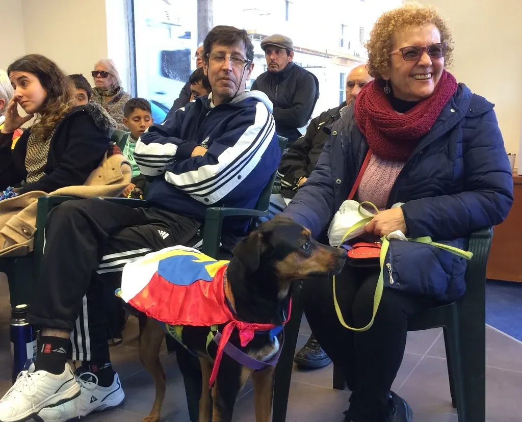 Varias señoras sostenían con fuerza banderas del Frente Amplio, otros llevaban escarapelas en sus abrigos, hasta un perro de una militante vestía una capa con los colores del partido.