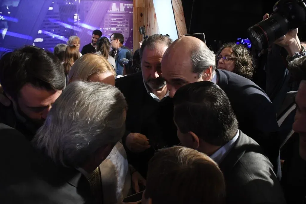Sobre las 21.40 horas el debate tuvo una pausa donde los precandidatos charlaron con sus asesores. Los equipos aprovecharon para dar consejos, corregir cuestiones y arengarlos.