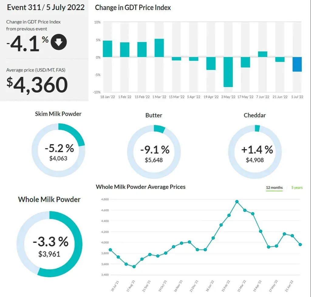 Resultados de la última subasta de Global Dairy Trade.