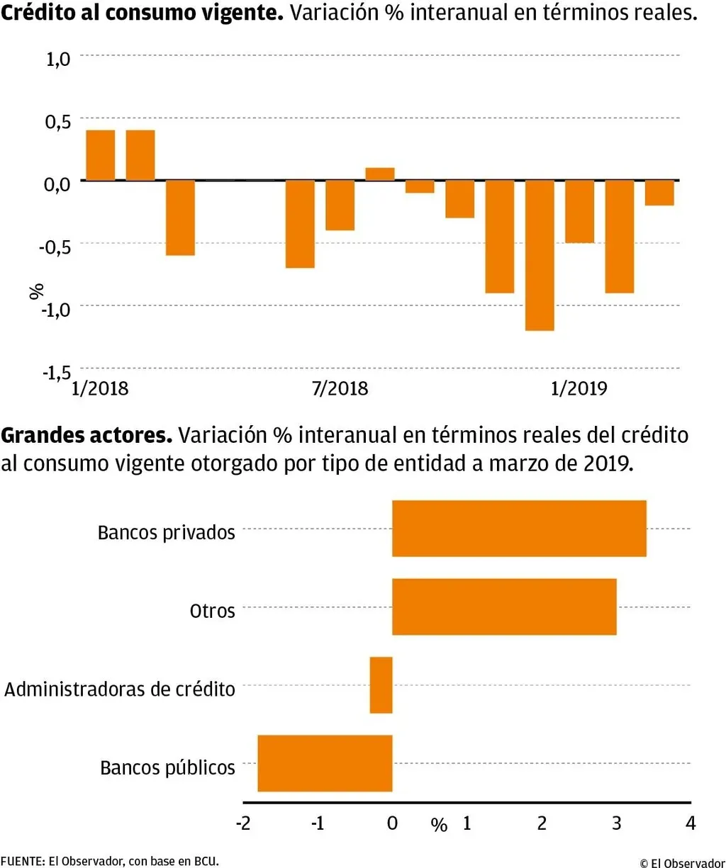 El Índice de Crédito al Consumo de El Observador (ICC-EO) tuvo una caída de 0,2% en los 12 meses finalizados en marzo. De esa manera, acumula 10 meses consecutivos de retroceso interanual y 12 meses sin crecer.