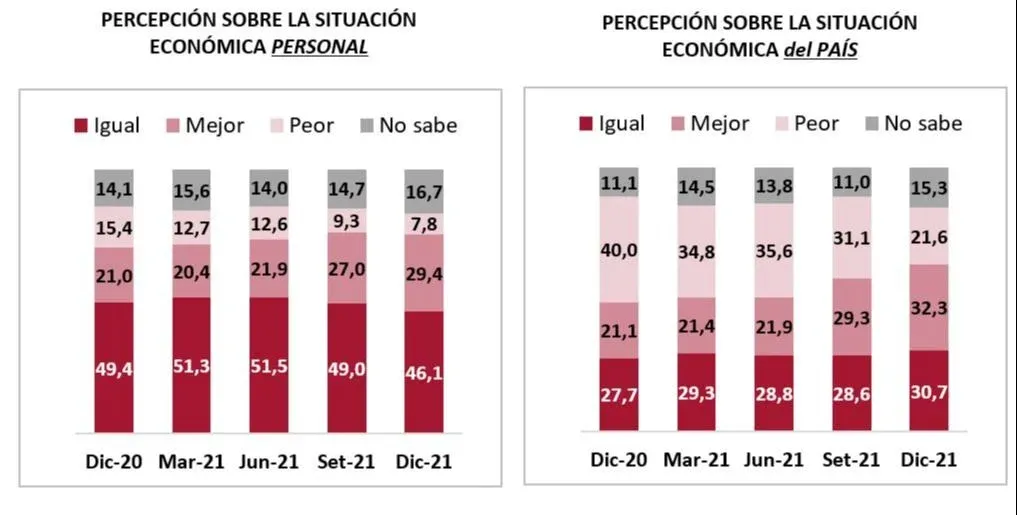 El relevamiento registró una mejora en las expectativas de los consumidores. Es la tercera medición en que aumenta la proporción de personas que ven un repunte de la situación económica del país y es el cuarto registro de aumento de perspectivas económicas personales.