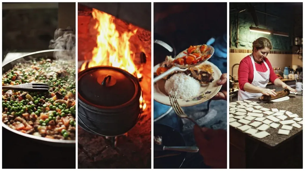 En alguna parte de este documental una frase, una imagen, un aroma recreado por una escena, remiten a alguna experiencia que marcó tu pasado desde la cocina, y eso va por un camino muy diferente al de la gastronomía pensada como algo sofisticado. A los buñuelos de acelga, a los hongos en escabeche, al guiso de oveja, a ese chupín perfecto de pescado. Y a lo que rodeó a esas comidas, a lo que pasaba en el fondo: tu madre que gritaba que todo el mundo a la mesa, tu abuela que avisaba que salían pasteles de membrillo porque seguro que llovía, la tía que se encargaba de recolectar las guayabas para hacer dulce, el primo mayor que traía las damajuanas de vino y el padre que guardaba el bollón enorme de caña con butiá que se abría en el campamento de Semana Santa.