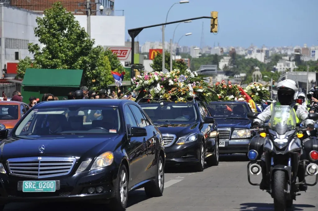En los coches que escoltan el féretro de Vázquez van hijos, nietos y dirigentes como José Mujica y la intendenta Carolina Cosse.