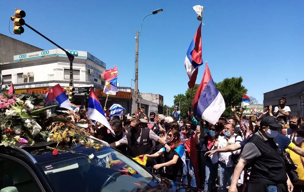 Ya cerca de las 13 horas, son cientos en los alrededores del cementerio. Banderas de Uruguay, remeras de Progreso y, por supuesto, los tres colores del Frente Amplio. Serán miles cerca de las 14 horas, cuando el cortejo fúnebre ingrese por la avenida Carlos María Ramírez.