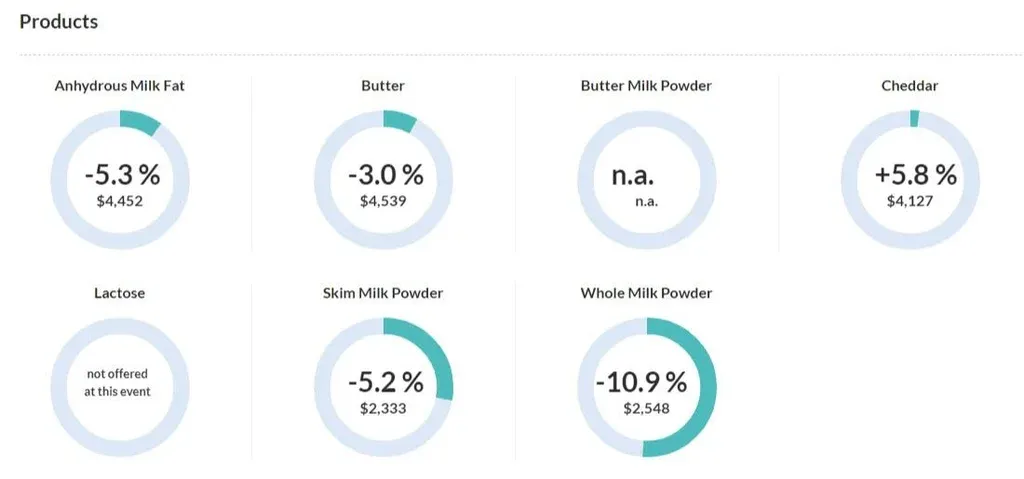 La última licitación (martes 15 de agosto) en la plataforma de comercialización de lácteos Global Dairy Trade (liderada por la compañía neocelandesa Fonterra) concluyó con datos adversos: una caída de 7,4% en el precio promedio (considerando todos los productos) respecto a la licitación anterior, con un valor que quedó en US$ 2.875 por tonelada.