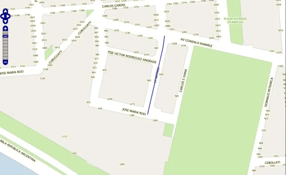La calle 17 metros está ubicada entre Gonzalo Ramírez y José María Roo, al costado del Cementerio Central. Su denominación fue dada "en el plano de fraccionamiento" del antiguo Cantón Municipal.