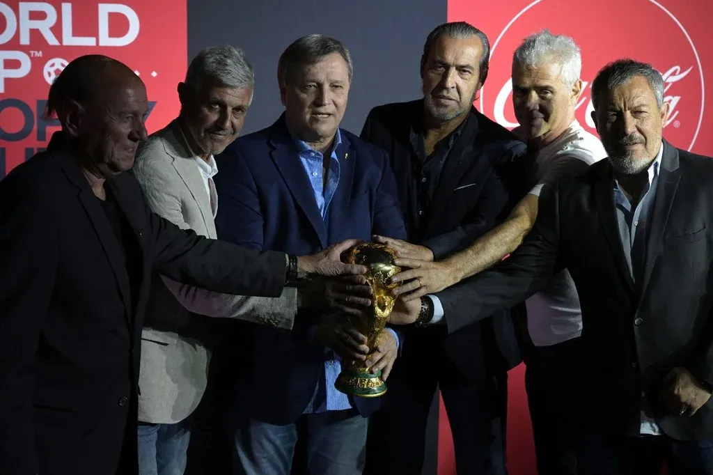 Campeones del mundo con Argentina en 1978 y 1986: Omar Larossa, Ricardo Giusti, Daniel Bertoni, Sergio Batista, Alberto Tarantini y Carlos Tapia