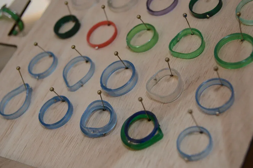 Las caravanas son los productos en los que más ha trabajado, pero también ofrece anillos. Algunos son con CD reciclados, pero otras con plástico PET, que del que está hecho las tapas de las aguas embotelladas y los refrescos.