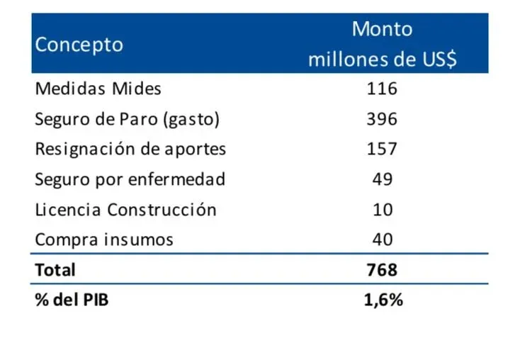 El segundo aporte más abultado -según las estimaciones- es por concepto de “resignación de aportes”, que entre otras cosas determinó facilidades de pago y exoneraciones a empresas de Industria y Comercio y monotributos del Mides entre marzo y abril.