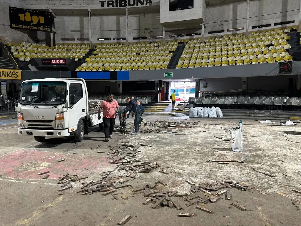El piso nuevo llegó al Palacio Peñarol el pasado martes y su instalación comenzará este lunes.