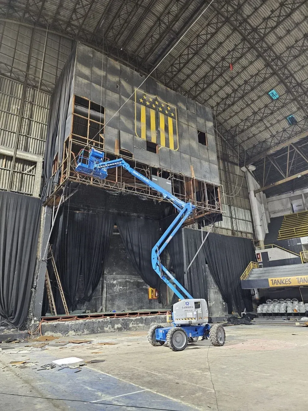 "Se sacaron dos escalones de cada tribuna para llevar la medida del piso de 28 por 15 metros a 38 por 24 metros", explicó el dirigente aurinegro.