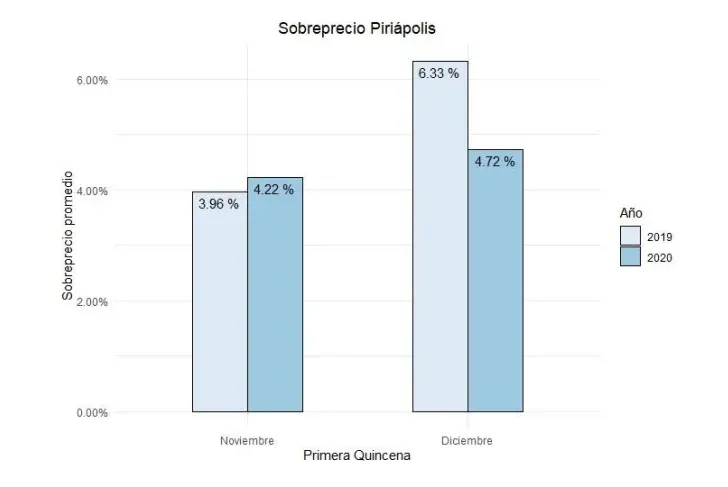 Sin embargo, la diferencia de precios en los últimos meses de 2020 es menor al sobreprecio de noviembre y diciembre de 2019 y hubo una reducción de los precios en este sentido.