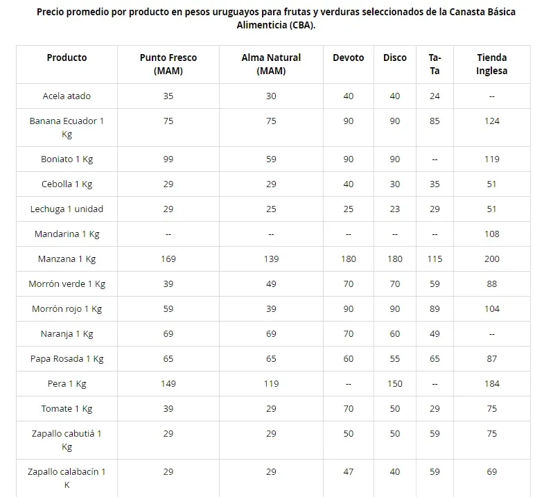 El estudio se realizó a partir de las cadenas de Tienda Inglesa, Disco, Devoto y Devoto Express de Montevideo, Punta del Este, Piriápolis y Atlántida.