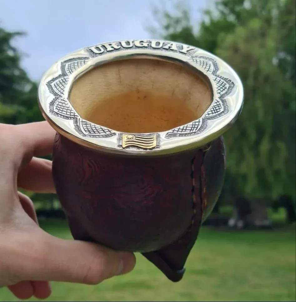 Mate forrado con cuero vacuno.