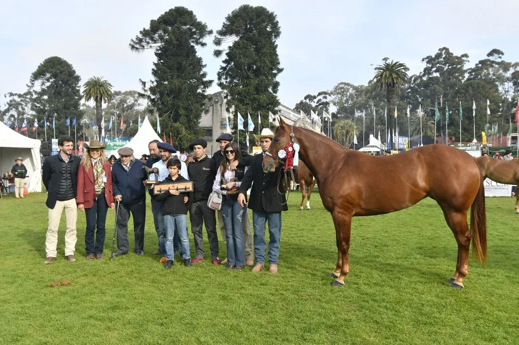 El premio a la mejor de todas las hembras fue entregado por don Julio Bonomi (ex presidente de ARU e histórico impulsor de la raza); Juan Ache, presidente de la Sociedad de Criadores de Cuarto de Milla (SCCM); y Mario Grandal (jefe de exposiciones de la ARU, quien también fue homenajeado en esta pista dado su anuncio de jubilación).