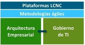 Los cuatro conceptos clave alineados a lo que las organizaciones necesitan para hacer realidad su transformación digital son: arquitectura empresarial, métodos ágiles, plataformas low code – no code y gobierno de TI.