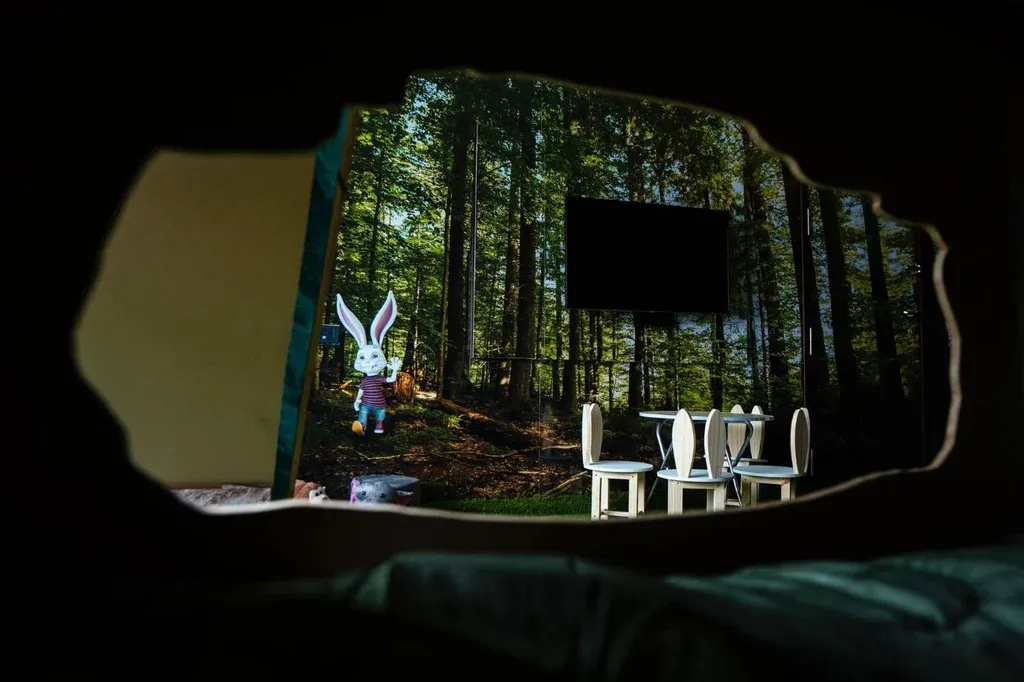 En la habitación Noche en el Bosque Encantado la experiencia de adentrarse en el bosque comienza desde la puerta de ingreso, luego continúa con el descubrimiento de que sus camas simulan cuevas, que hay que escalar para llegar a las camas superiores y deslizarse por una cascada (tobogán) para bajar.