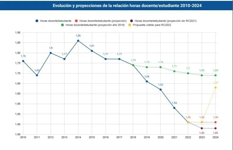 Cada vez hay menos horas docente por estudiante.