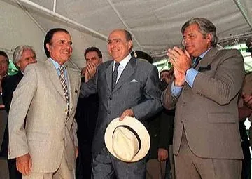 Carlos Menem junto a Julio María Sanguinetti y Luis Alberto Lacalle Herrera