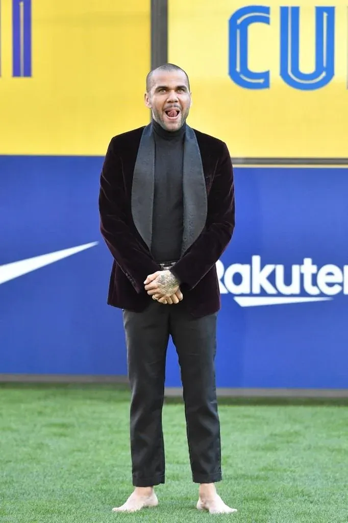 El lateral brasileño Daniel Alves fue presentado este miércoles como nuevo jugador de FC Barcelona y dio la nota por el look que eligió para comenzar su segundo ciclo en el equipo catalán.