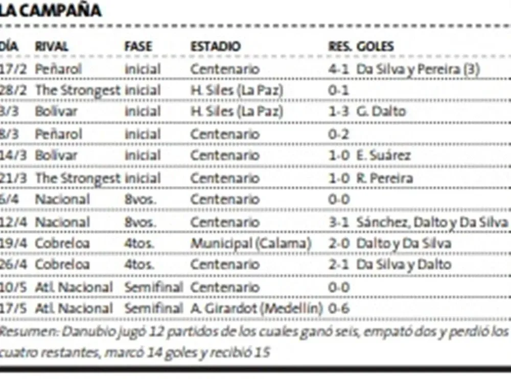 Danubio fue el primer equipo uruguayo, tras Peñarol y Nacional, en llegar a la fase semifinal de la Libertadores.