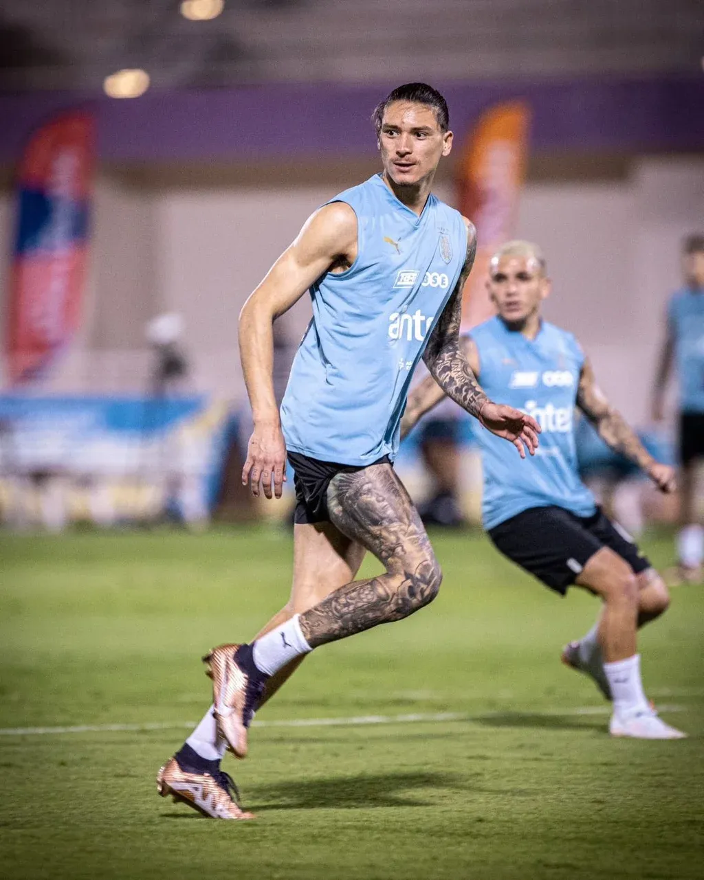 @Uruguay Darwin Núñez en el Mundial de Qatar Darwin dijo que no es "una fiera" como Luis Suárez o Edinson Cavani. "No soy tanto como Suárez y Cavani, que son ídolos en la selección. Yo tengo que seguir el paso de ellos y siempre escucharlos porque son referentes”.