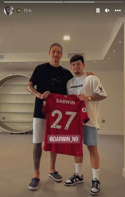 Con el trabajo terminado, Núñez tuvo un gesto con el artista, cuyo estudio se encuentra en Málaga: le regaló la camiseta del Liverpool con el número 27, el que utilizó durante su primera temporada en la Premier League.
