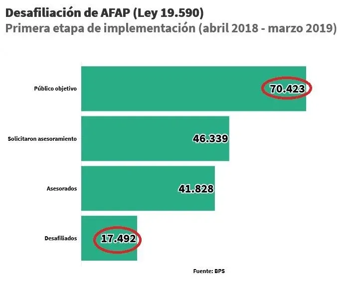 Un estudio realizado por el BPS previo a que se pusiera en marcha la ley, proyectó en 157.860 la cantidad de personas que cumplían con los requisitos previstos y que eventualmente podrían hacer uso de la opción de desafiliación.