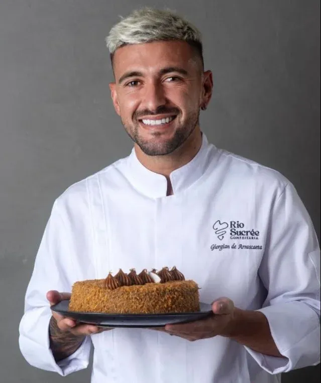 El futbolista uruguayo de Flamengo, Giorgian De Arrascaeta, tiene su postre en una pastelería de Río de Janeiro que lo presentó con una foto del ídolo del equipo carioca vestido de chef.
