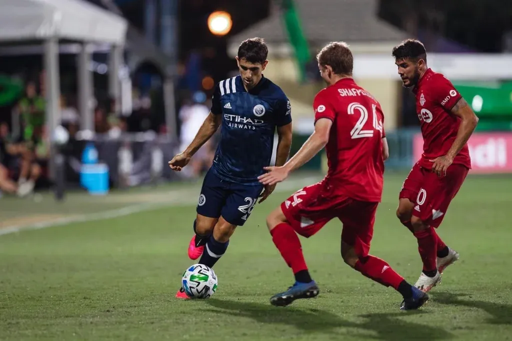 New York City FC / MLS Nicolás Acevedo en su debut “Estamos todos los equipos en un complejo y no se puede salir, salvo para ir a entrenar y a los partidos”, contó Acevedo a Referí, luego de su debut del domingo, en el partido por cuartos de final que le ganaron a Toronto.