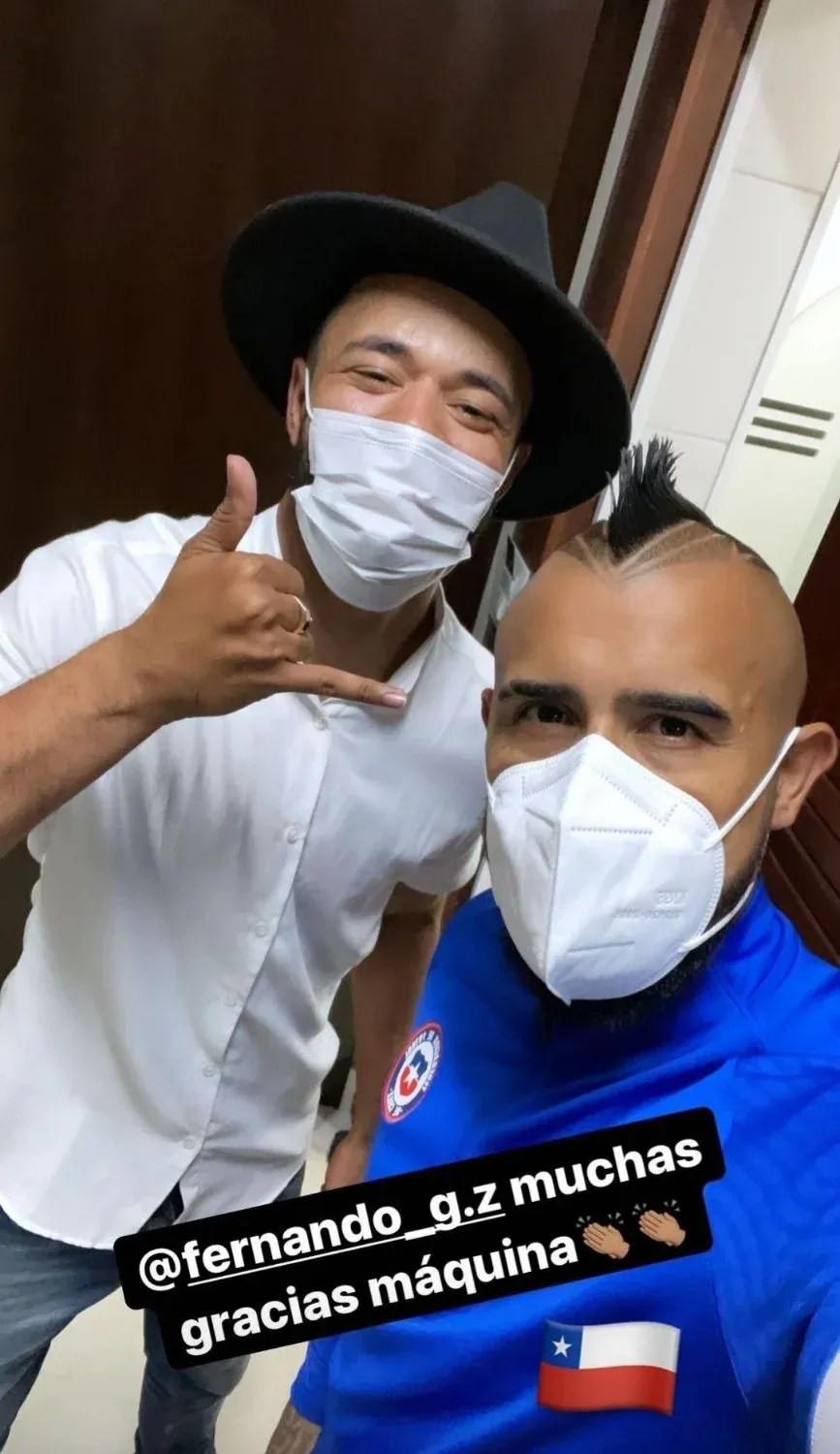 Una transmisión en vivo desde la cuenta Fernando_g.z en Instagram del estilista local Luis Fernando Gonçalves y varias fotografías que publicó muestran a Vidal, Gary Medel, Eduardo Vargas, Guillermo Maripán y Pablo Galdames cortándose el cabello en las habitaciones del hotel donde concentra La Roja en Cuiabá.