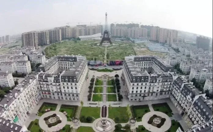 Construida como un enorme complejo de viviendas de lujo, Tianducheng emula la famosa ciudad francesa de las luz, en todo, desde la arquitectura de la época hasta la Torre Eiffel en miniatura de 108 metros de altura.
