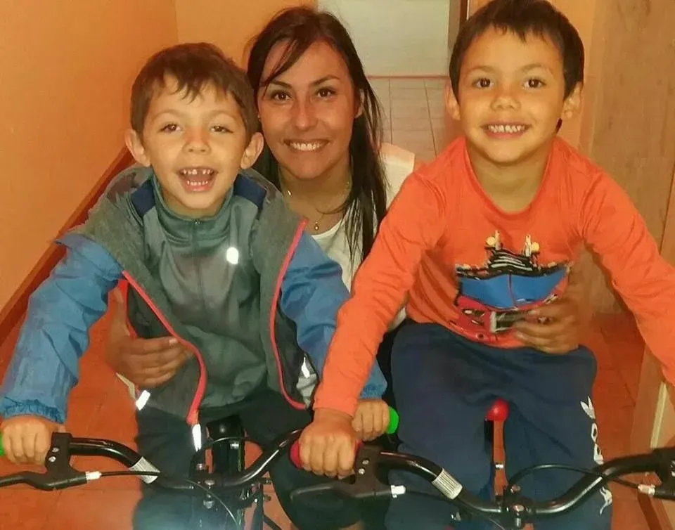 Leticia Gorriarán junto a sus dos hijos mellizos.