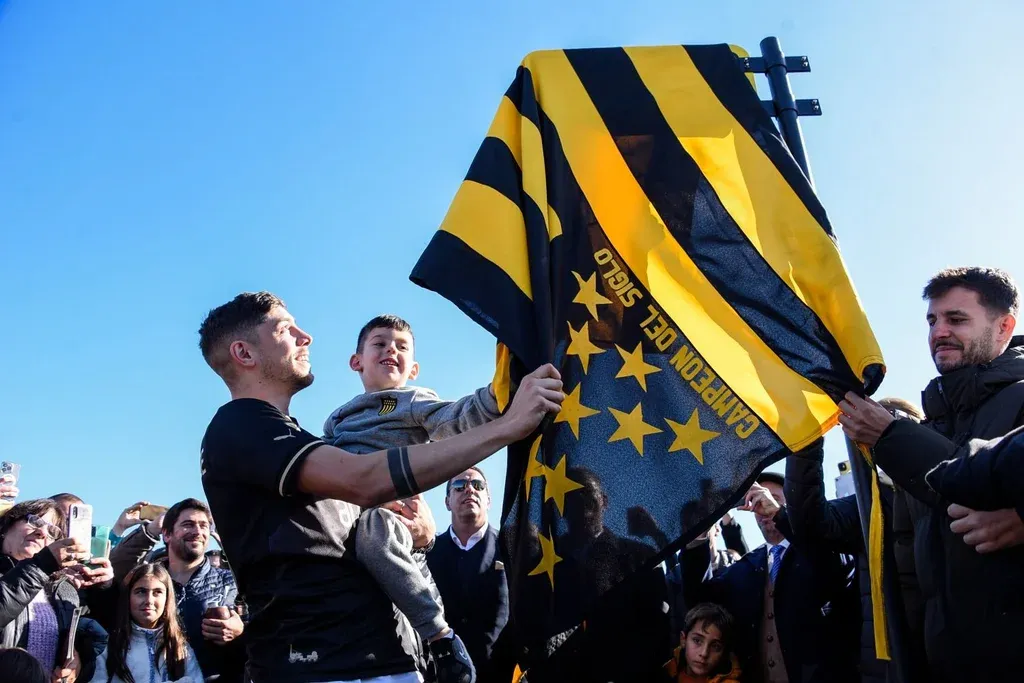 El jugador formado en los aurinegros, que hoy es figura de Real Madrid y la selección uruguaya, estuvo acompañado por su pareja, Mina Bonino, y su pequeño hijo, Benicio, de tres años. Además, la familia está a la espera de un nuevo integrante ya que Mina está embarazada.