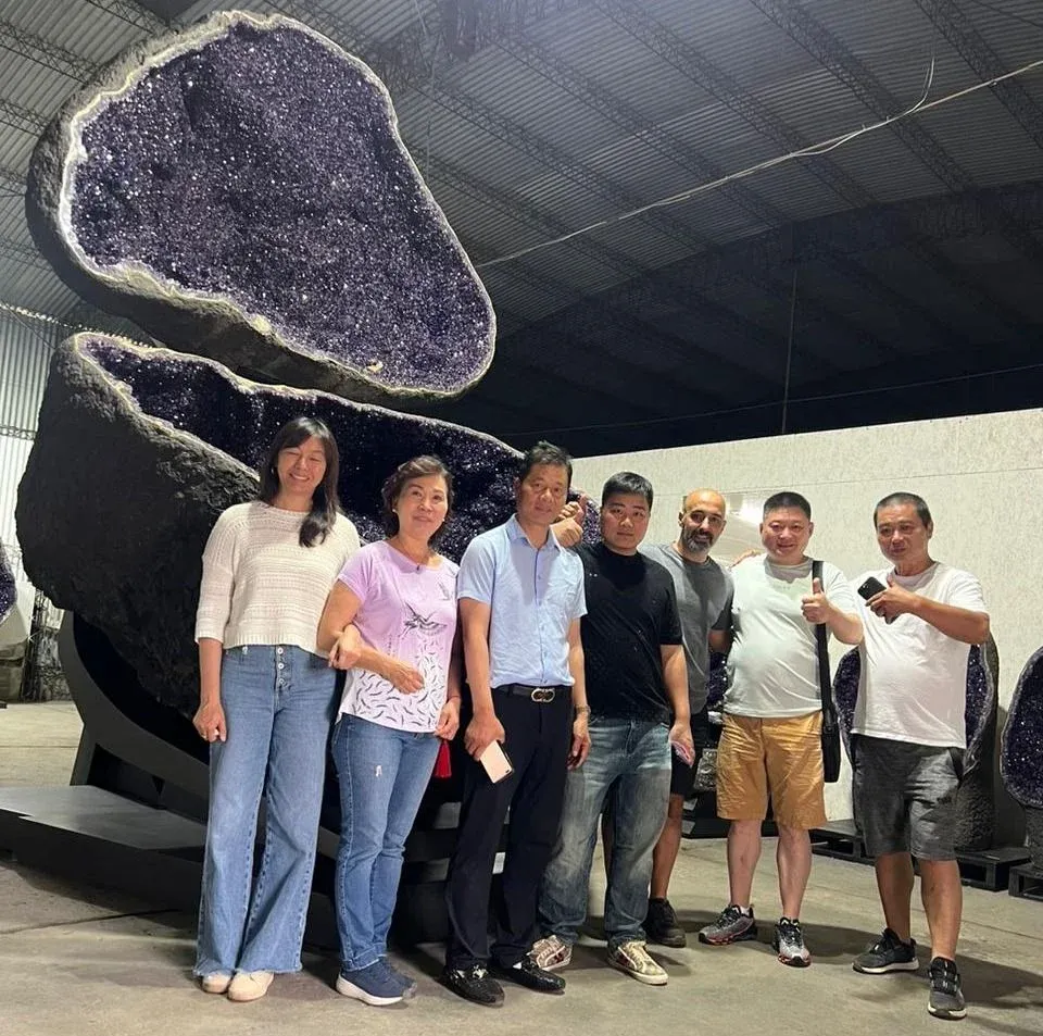 Carlos con una delegación de empresarios chinos. Le Stage, la empresa a la que Carlos dirige, exporta el 100% de lo que produce. Por la dinámica histórica del mercado, la amatista se exporta desde Uruguay y Brasil a todo el mundo "pronta para el consumidor final", característica del mercado que se mantiene inclusive con China.