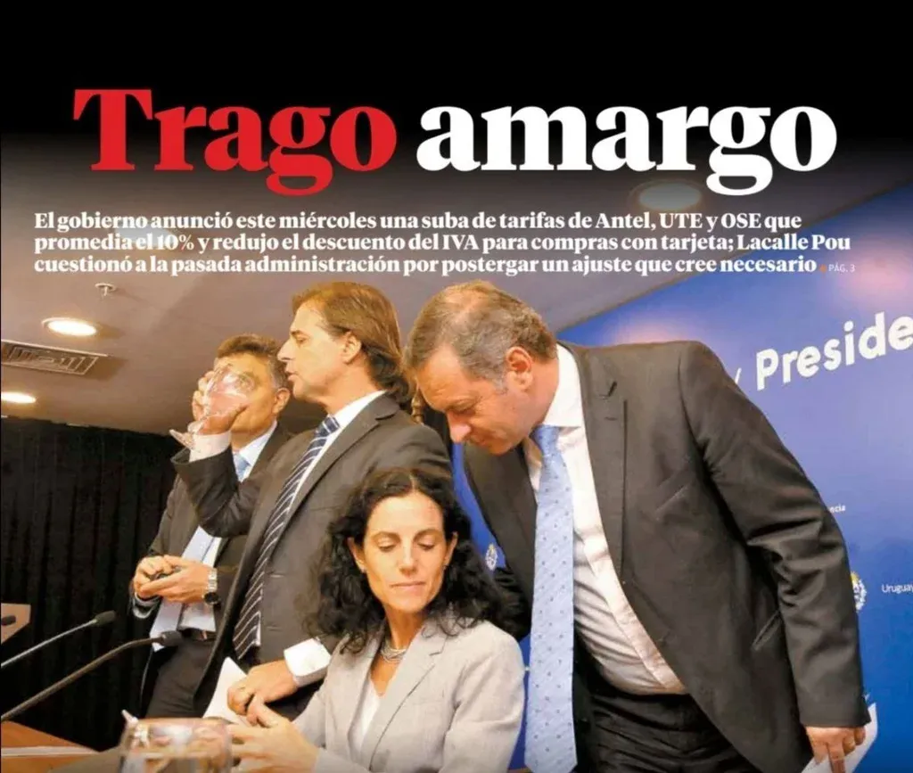 No necesariamente es bueno para la imagen de Lacalle ser el portador de las malas noticias cuando son necesarias. Muchas veces son los ministros los fusibles que saltan justamente para proteger al mandatario. Lacalle se sentó frente a las cámaras e hizo el anuncio del ajuste acompañado de su equipo económico y el secretario de la Presidencia.