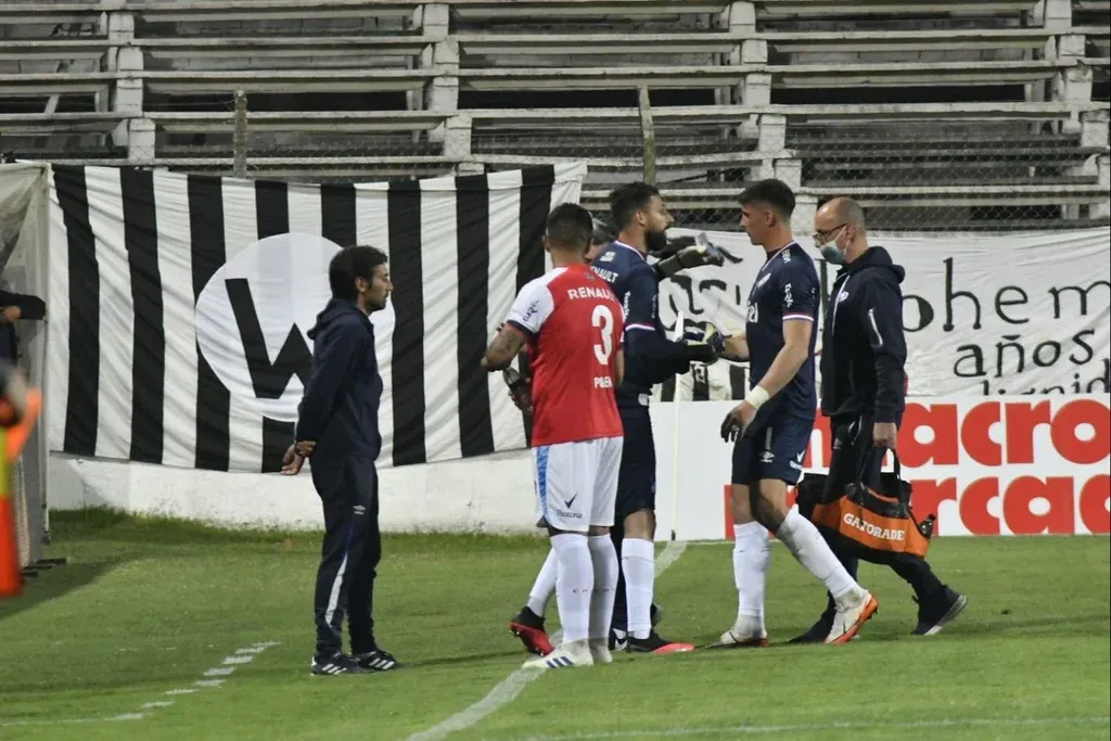 Matías Zunino, tras pegarle un patadón a Hernández terminó sentido también en una rodilla.