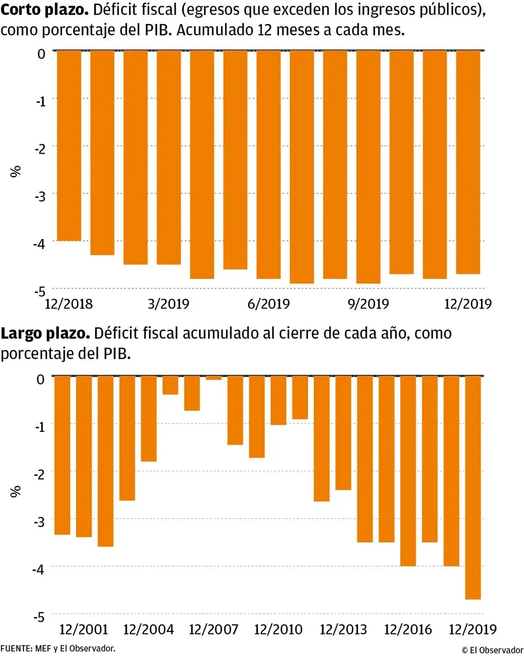 Por segundo año consecutivo, las finanzas públicas ampliaron el rojo de sus números en 2019 y se amplió aun más la brecha respecto al déficit fiscal con que la administración de Tabaré Vázquez recibió el gobierno en 2014, pese a asumir la presidencia con un fuerte discurso de compromiso fiscal y sucesivas medidas de ajuste principalmente por el lado de los ingresos.