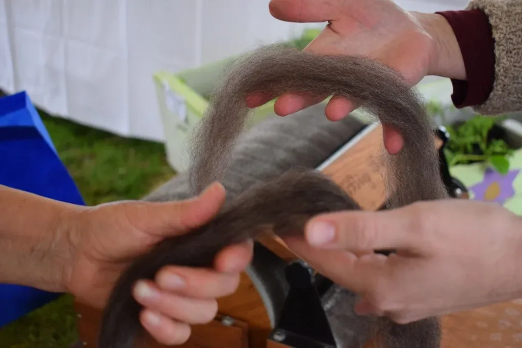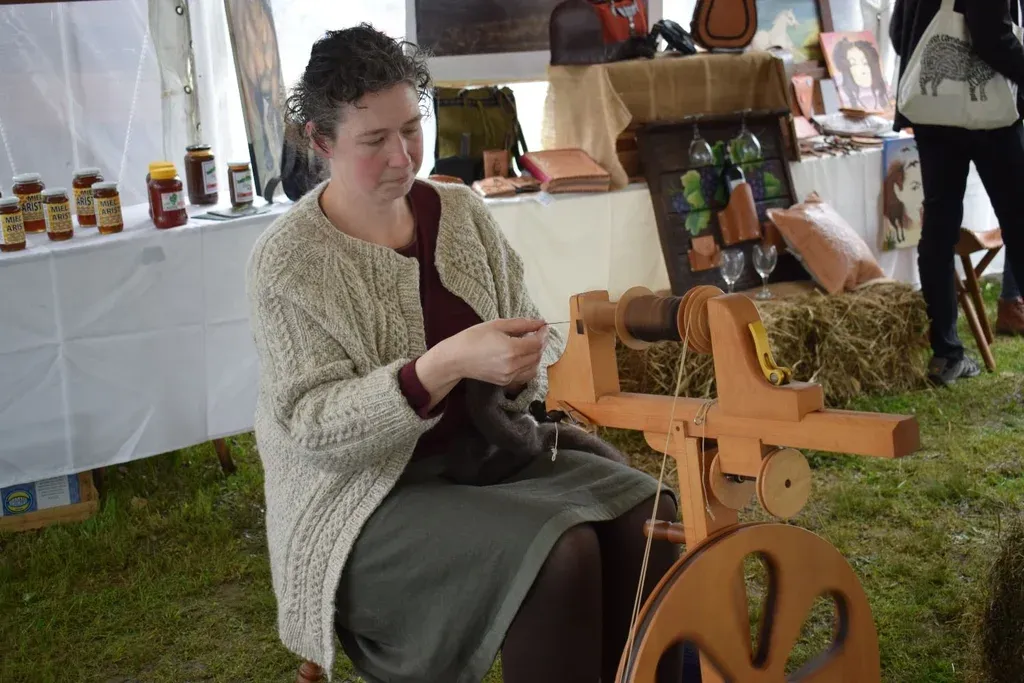 En el marco de la Expo Rural San Carlos Calima le dio a Megan la oportunidad de enseñar su trabajo al público, y fue una de las grandes novedades del stand de la gremial. Durante la exposición, con mucha tranquilidad, buena disposición para explicar y descalza, la productora hiló en vivo, lo que llamó la atención de muchas personas, que la rodearon atentos a cómo trabajaba la lana.